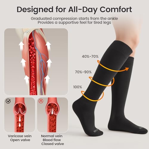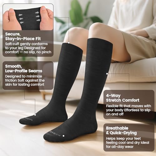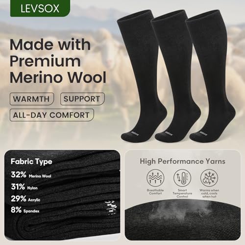 LEVSOX Merino Wool Compression Socks for Women & Men 20-30 mmHg Knee High Graduated Support Socks for Nurses Pregnancy Travel