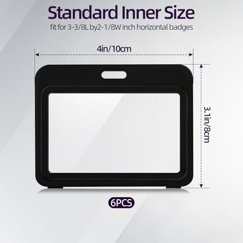 6Pcs ID Badge Holder, Hard Plastic ID Card Holder for Office,School,Credit Cards,Drivers Licenses (Horizontal)