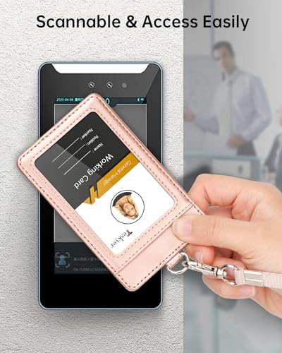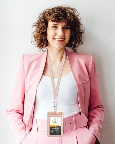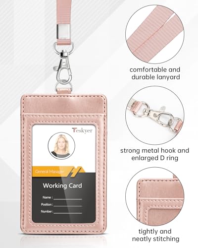 Teskyer Lanyards for ID Badges, Leather ID Badge Holder for Work School IDs, Cruise Ship Cards, Hotel Key Cards, Pass Cards – Rose Gold