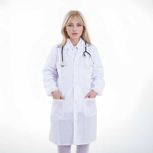 Scientist Doctor Costume Women Men Halloween White Long Sleeve Lab Coats with Stethoscope for Science Doctor Nurse
