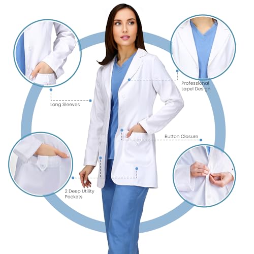 Utopia Wear Professional Women’s Lab Coat Mid-Length Medical Lab Coat for Science Chemistry and College