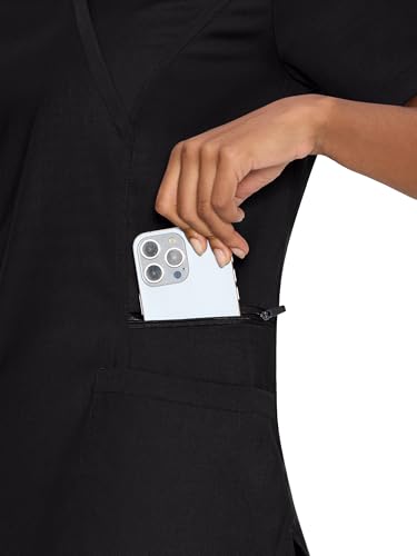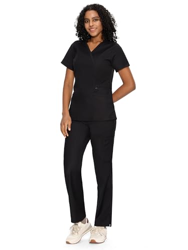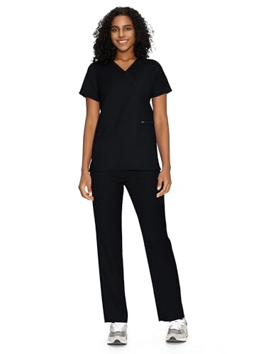 COZYFIT Scrubs for Women – Mock Wrap Top & Straight Leg Pants with 6 Pockets, Back Princess Seams, Soft Fabric