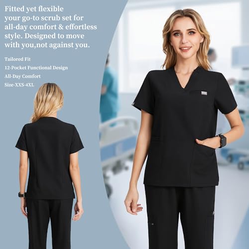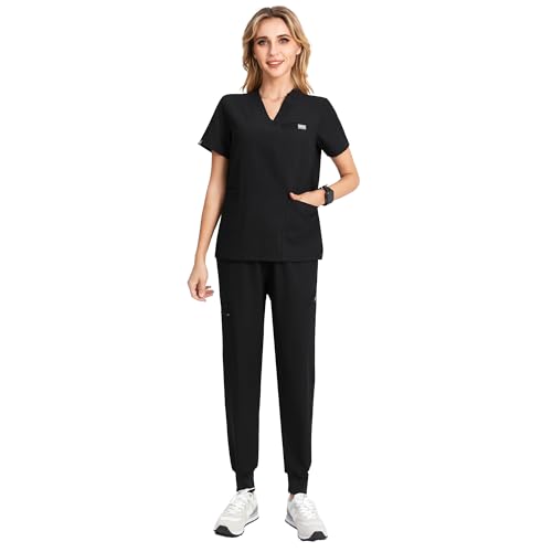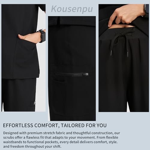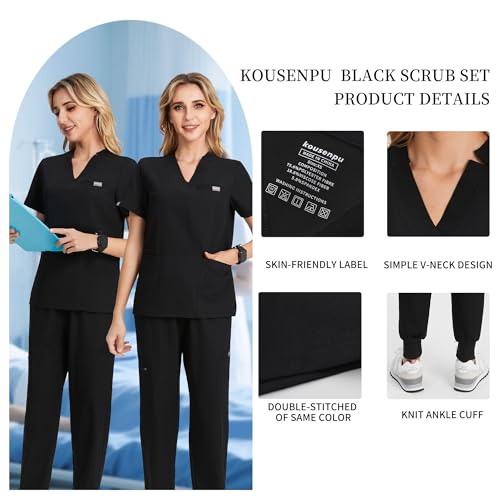 Kousenpu Scrubs for Women Set,V-Neck Stretch Scrubs Top & Jogger Pants Set,Medical Workwear for Nurses Women and Man