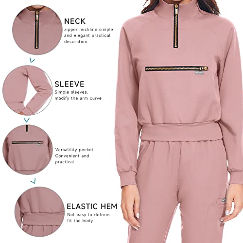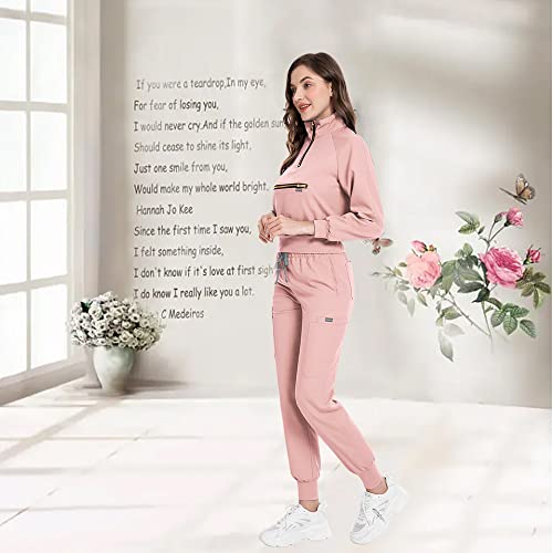 niaahinn Scrub Set with Long Sleeve for Women Scrub Top & Jogger Scrub Pants Medical Working Uniforms with Pockets