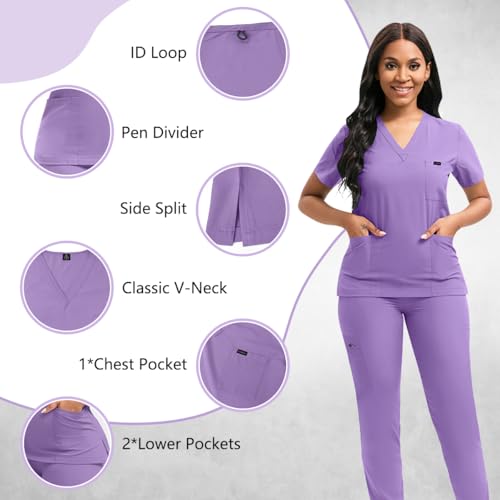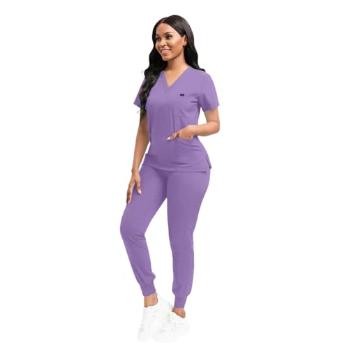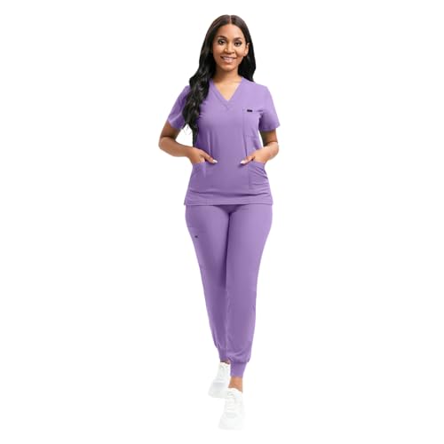 Scrubs for Women Set, Women’s V-Neck Top & Jogger Scrub Pants, Nursing Uniform Scrubs Set with 8 Pockets