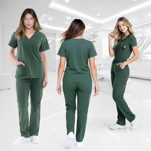 Scrubs Set for Women – V-Neck Top and Cargo Pants Medical Uniform Scrub