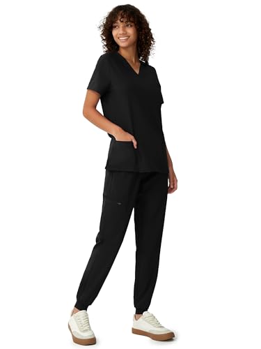 Women’s V-Neck Scrubs Top & Cargo Pants Set, 10 Pockets, Yoga Waistband, 4 Way Stretch